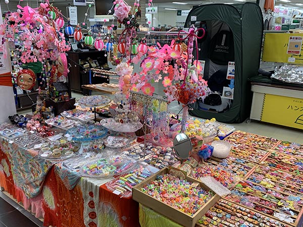 子供達も大好き、お祭りのようでどこか懐かしいヘアピン やブローチ、ヘアゴム、キラキラの指輪が沢山ございます。