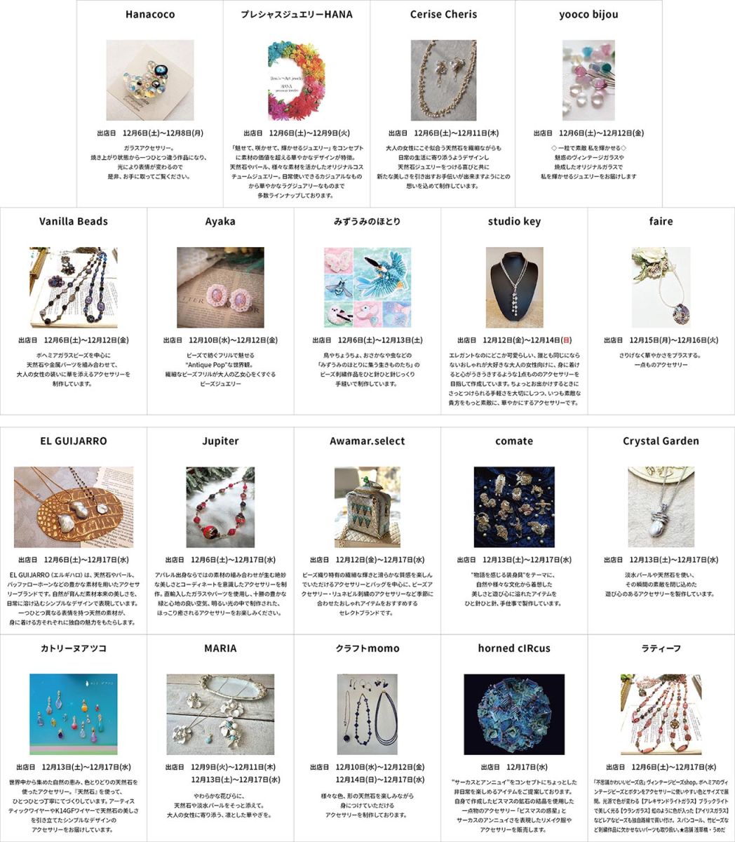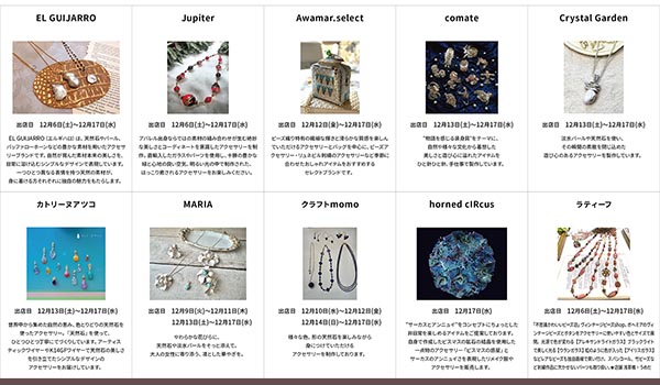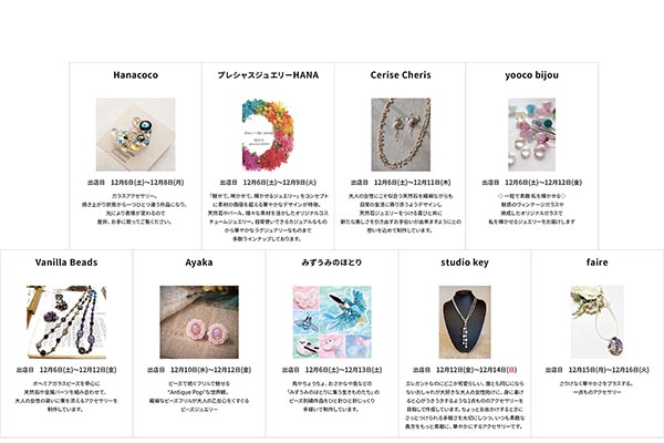 ビーズや天然石を使ったハンドメイド作家が入れ替わりで出店。