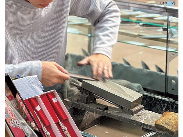 日本三大刃物産地のひとつである堺市の「堺打刃物」。その極上の切れ味を持つ包丁各種を対面販売いたします。名入れや持ち手のカラーコーティングも承ります。