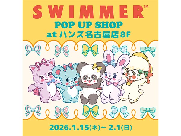 8F 1月15日(木)~2月1日(日) 【予告】SWIMMER POP UP SHOP 動物やスイーツをモチーフとしたデザインが特徴で、どれも心くすぐるものばかり。かわいいが溢れるアイテムを多数取り揃えました。 ■開催場所:名古屋店8F ■開催期間:1月15日(木)~2月1日(日)