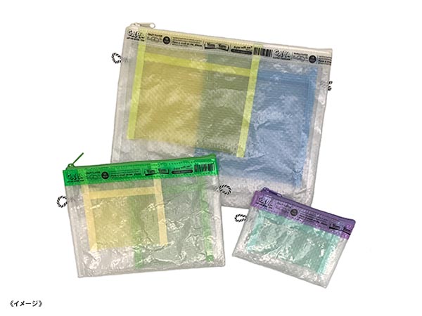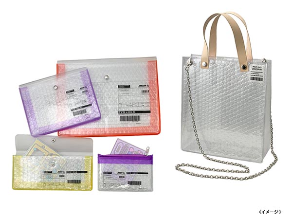 透明PVCにエアパッキンをサンドすることで、デザインのみならず緩衝材の役割も果たし、機能面でも優れたシリーズです。