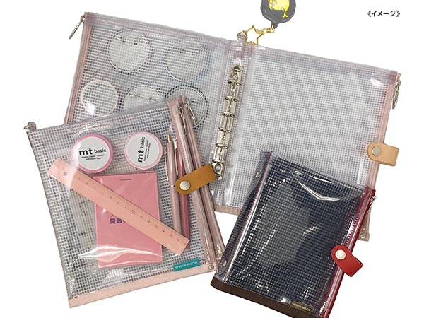 ポーチのように使える手帳は、網目のシートが入っていて缶バッチなどを入れてデコるなど、押し活にもオススメ。
