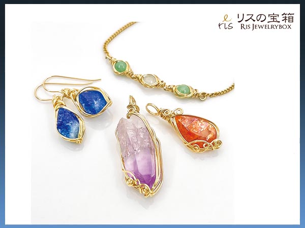 豊富なルースと、指・ワイヤーのみで仕立てるハンドメイドジュエリーをご紹介。