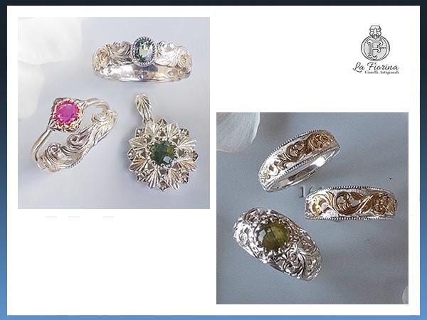 イタリア・フィレンツェの伝統技法の繊細な彫りと天然石が調和した、職人による手仕事ならではのジュエリーを展示販売します。