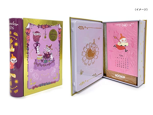 かわいらしい本型のブリキ缶に入った、ムーミンファミリーのカレンダーです。缶の中には 約高さ130×幅90mmの厚紙仕様のカレンダー12枚と木製スタンドが入っています。缶は小物入れやインテリアとしても使えます。