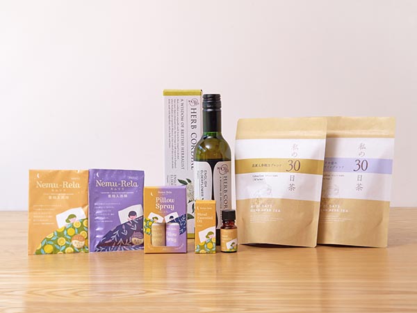 人気の30日茶2種をはじめ、入浴料・ピロースプレー・香り・コーディアルの詰め合わせ。