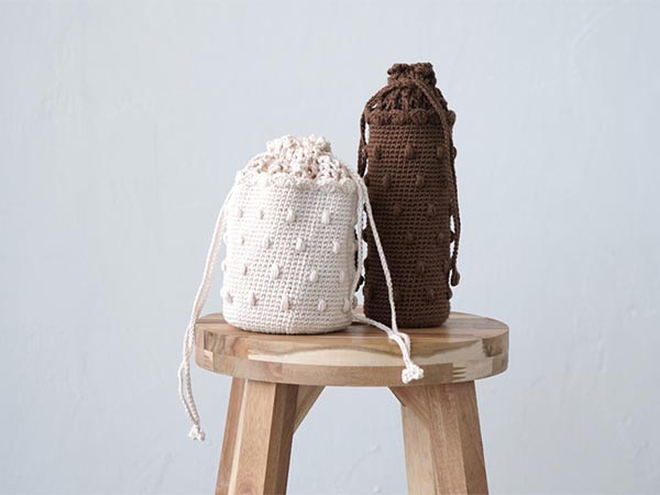 巾着かペットボトルケース、どちらかお好きな方を編んでいただきます。